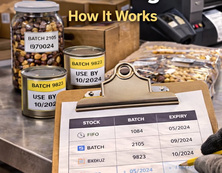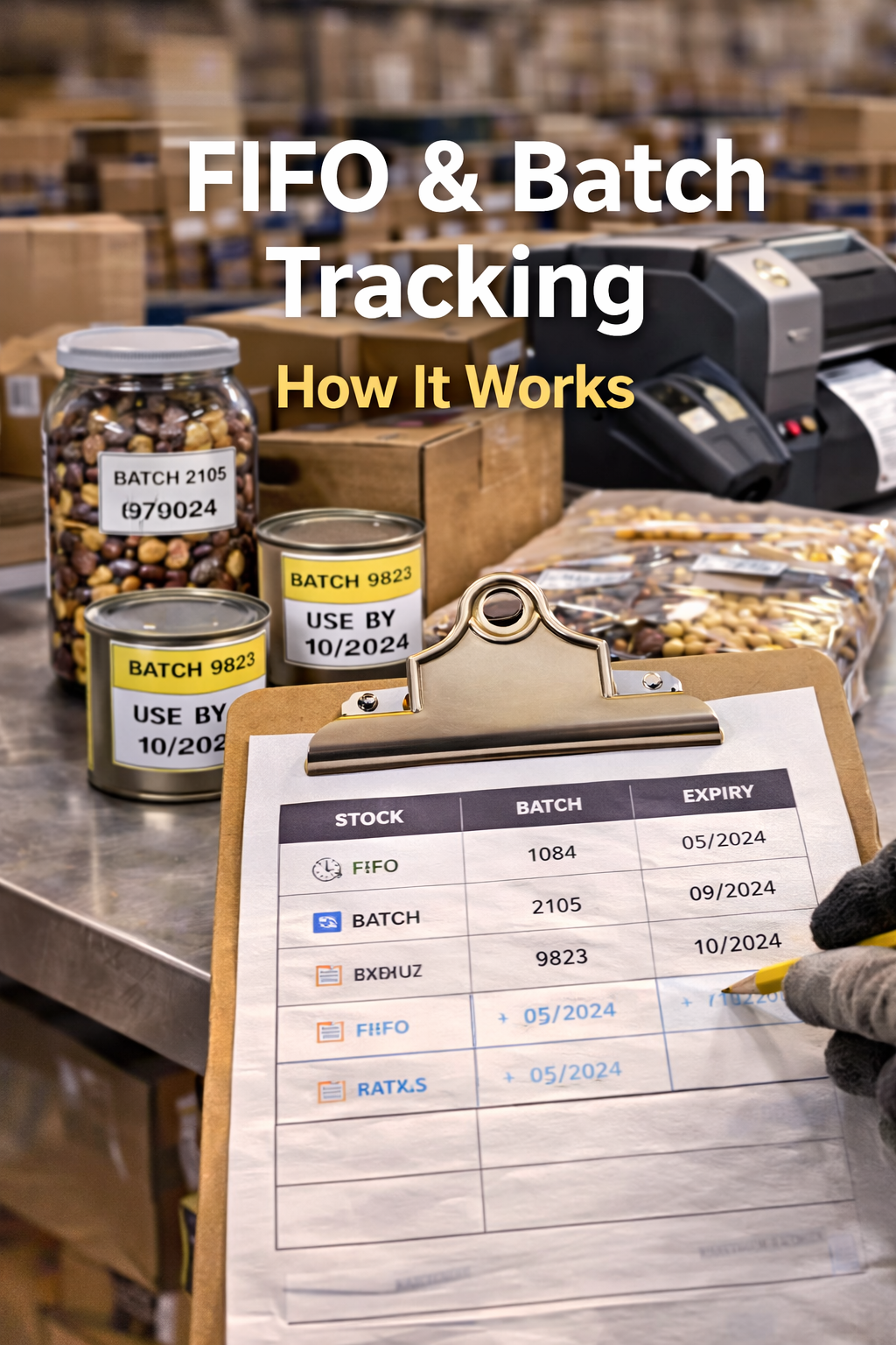 FIFO (First In, First Out) means we always pick and ship the oldest inventory first — ensuring your products with the earliest expiry dates leave the warehouse before newer stock. This is applied automatically to all food and grocery inventory without any additional setup required.