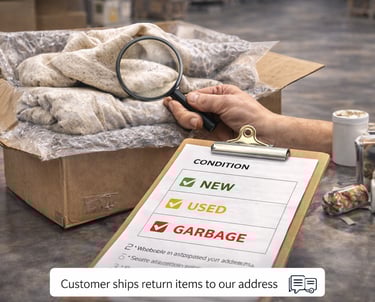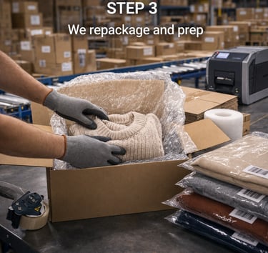 When your FBM customers send products back, we receive them at our Ohio warehouse, inspect each item and give it a clear condition grade so you always know exactly what came back and what to do with it.