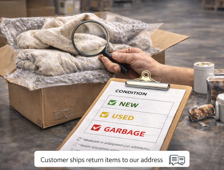 Every return is inspected and graded New / Used / Garbage. You see the result in Ysell immediately.